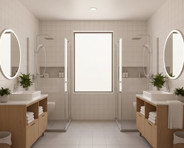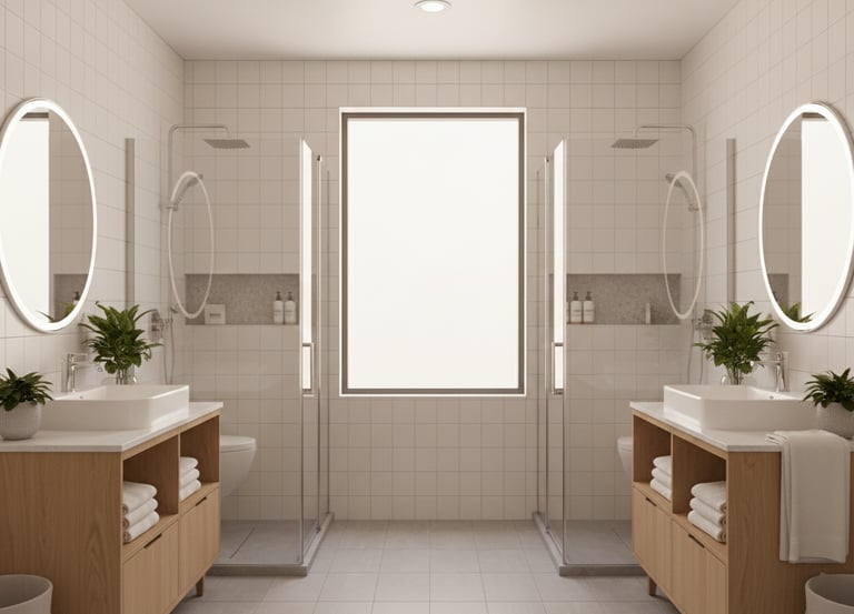 Well-maintained, sanitized and thoughtfully structured shared bathrooms to ensure comfort, cleanliness and accessibility for every resident.